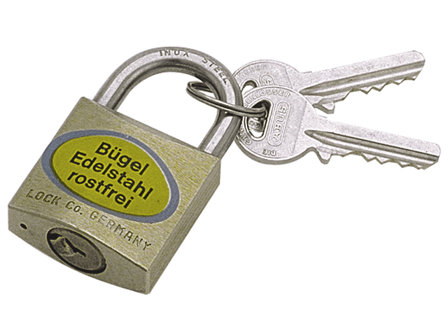 Bronzegehäuse mit gehärtetem Stahlbügel, mit 2 Schlüsseln.