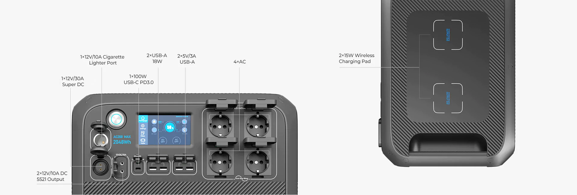 Auf dem Meer oder an Land in der Wildnis, kein Grund zur Panik. Neben der bereits verfügbaren Kapazität der AC200MAX Powerstation, kann einerseits die Batterie Erweiterungen B230 oder B300 Aushilfe leisten. Andererseits ermöglichen Aufladungsmöglichkeiten wie Solarpanels völlige Unabhängigkeit, egal wo Du Dich befindest. Die Bereitstellung von Licht, Heizung, warmes Essen oder auch Musik ist für die Powerstation kein Thema.
