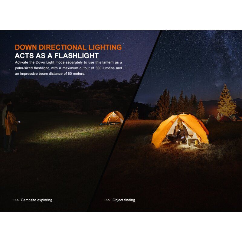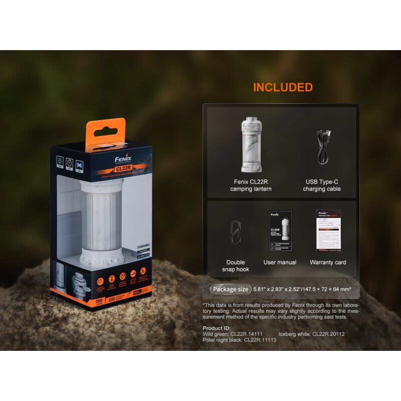 Die Fenix CL22R ist eine kompakte, tragbare Campinglaterne. Betrieben wird diese durch einen eingebauten 2600mAh Akku welcher über den USB-Typ-C-Ladeanschluss am Außengehäuse der Laterne aufladen wird. Diese vielseitige Laterne bietet eine 360°-Beleuchtung, rotes Licht und farbenfrohe Stimmungslichter. Mit einer maximalen Lichtleistung von 500 Lumen und der Schutzart IP65 ist die CL22R eine tolle Leuchte fürs Campen.