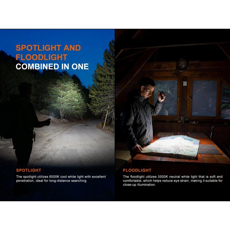 Hinweis: Gemäß dem ANSI/PLATO FL1-Standard basieren die oben genannten Spezifikationen auf den Ergebnissen, die Fenix in seinen Labortests mit einem integrierten 1650-mAh-Akku bei einer Temperatur von 21 ± 3 °C und einer