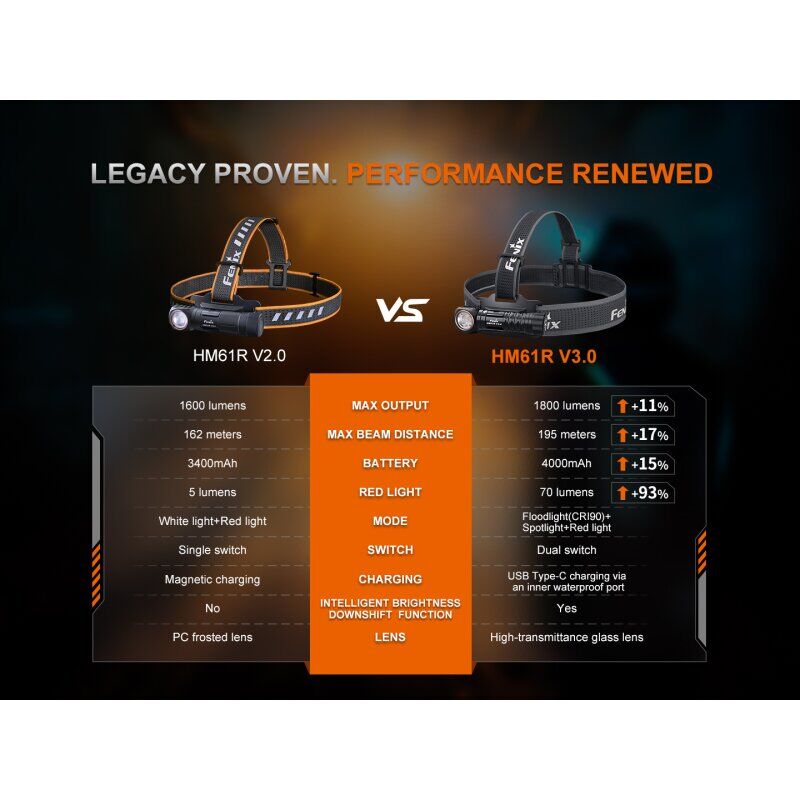 Die Fenix HM61R V3.0 ist eine wiederaufladbare Stirnlampe / Multifunktionsleuchte.