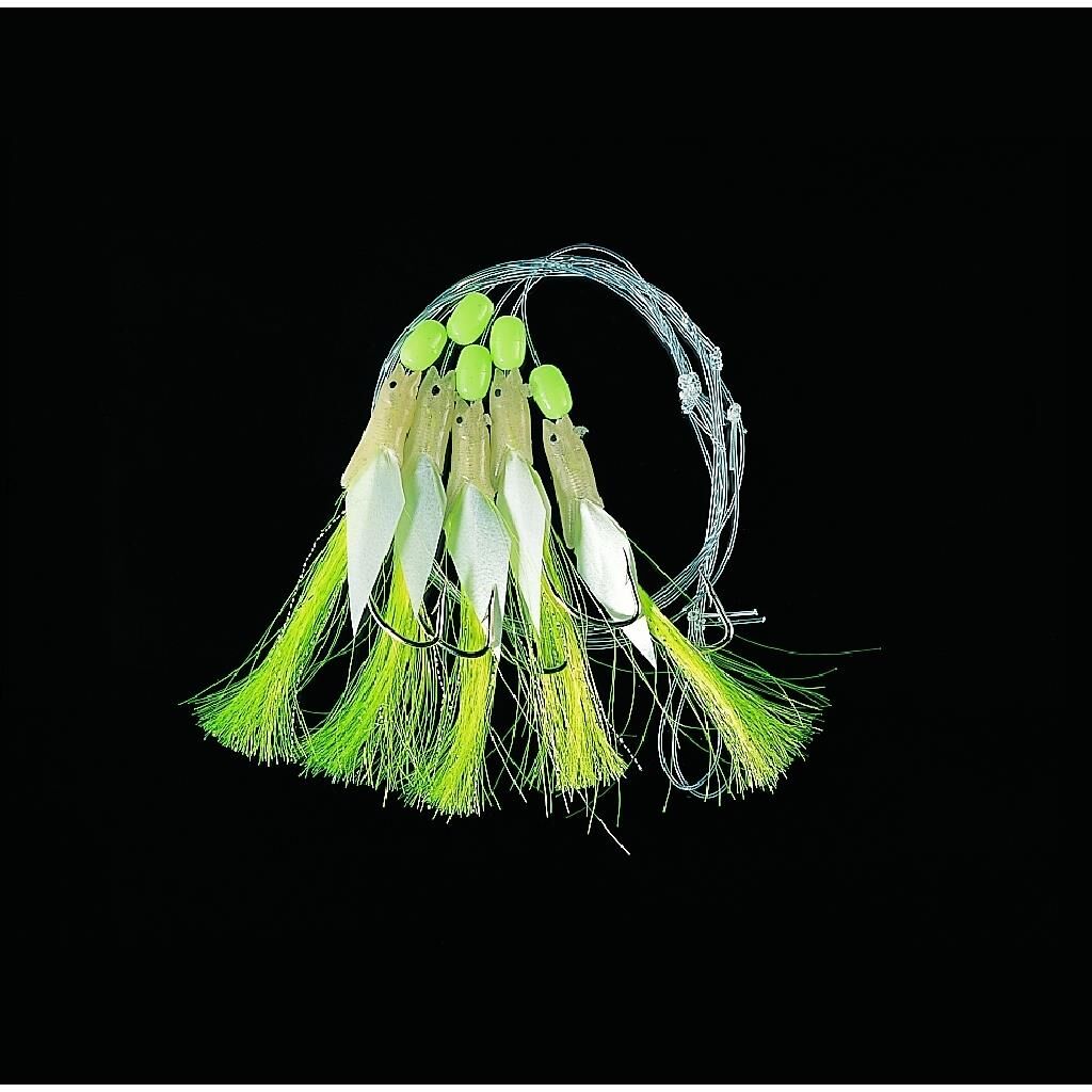 Meerespaternoster mit 5 selbstleuch- tenden, glitzer-reflektierenden Fischli's/ Shrimps komplett montiert.