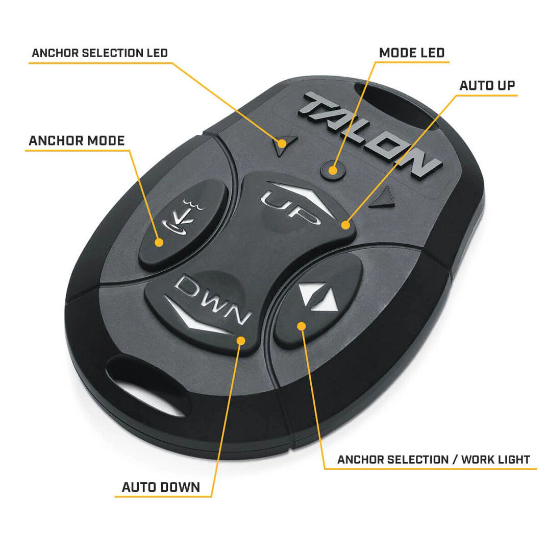 - Mehrere Steuerungsoptionen: Steuern Sie Talon von überall auf dem Boot aus mit den Optionen Ihrer Wahl: Bedienfeld, drahtlose Fernbedienung, Fußschalter, i-Pilot oder i-Pilot Link-Fernbedienung, One-Boat Network Mobile App oder direkt über den Humminbird-Fischfinder