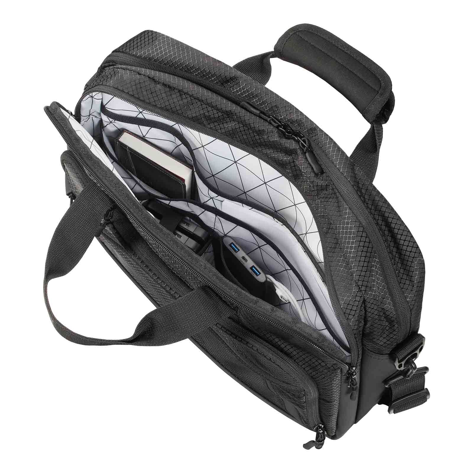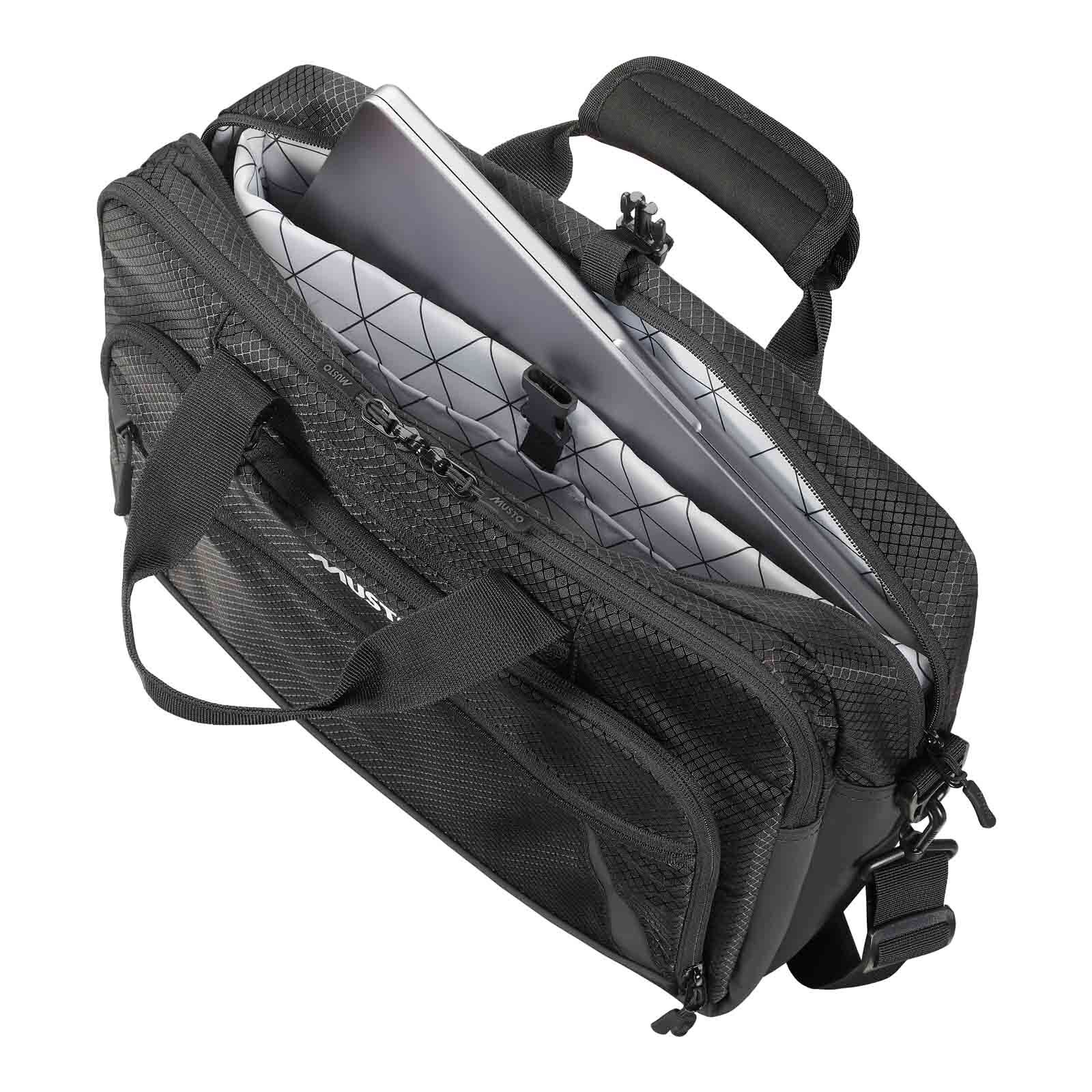 Die praktische Navigator Tasche von MUSTO gehört zu den Must-Haves im Alltag und auf Reisen. Die Business-Bag punktet mit clever genutztem Stauraum, Stiftschlaufen und einer Netztasche für einen schnellen Zugriff. Der Laptop findet sicheren Halt im extra gepolsterten Steckfach. Gefertigt aus strapazierfähigem und leichtem Ripstop-Gewebe verspricht die Tasche Qualität und Langlebigkeit. Der abnehmbare Schultergurt und die Griffe erleichtern das Tragen. Die Tasche verfügt über eine Lasche, die über den ausziehbaren Griff eines Rollkoffers gesteckt werden kann.