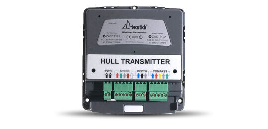 Der T121 Rumpftransmitter wird zum Anschluß des Echolot- und Loggebers sowie des Kompass-Sensors benötigt. Die Spannungsversorgung findet über die Bordspannung oder über die Solarzelle T138 statt. Außerdem verfügt der Rumpftransmitter über einen eingebauten Akku, der das Gerät bis zu 300 Std. mit Energie versorgt. Somit kann das Gerät zur Gewichtsreduzierung vor einer Regatta voll geladen werden und benötigt dann keine externe Spannung.