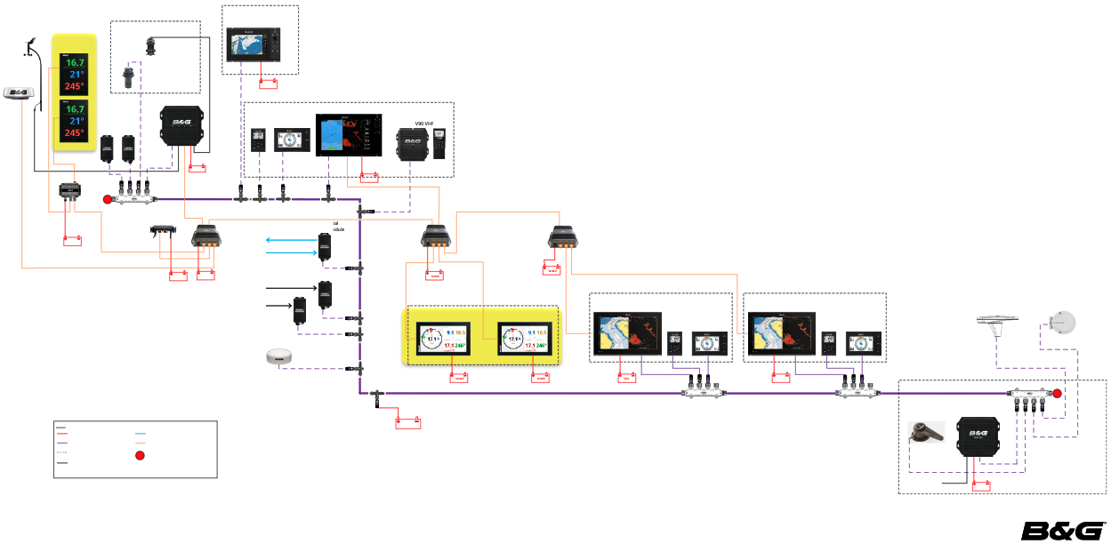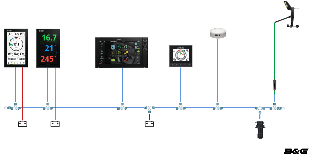 Das die Nemesis Displays werden - wie oben erwähnt über die Halo Nemesis Strom Datenkabel mit Spannung versorgt. Die Integration im Netzwerk erfolgt über einfach NMEA2000 Drop-/Spurleitungen.