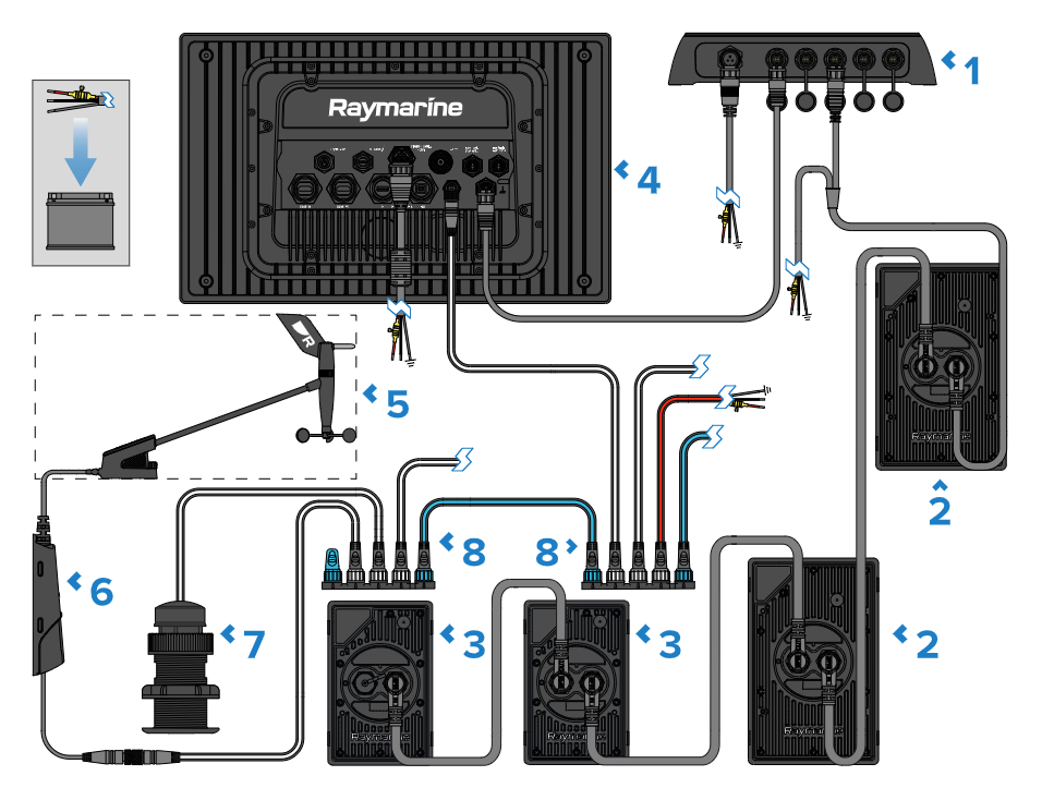 Die Alpha Instrumente sind speziell dafür konzipiert, sich nahtlos in Ihr bestehendes Raymarine System zu integrieren. Die Vernetzung erfolgt in der Regel über das RayNet-Ethernet-Protokoll.