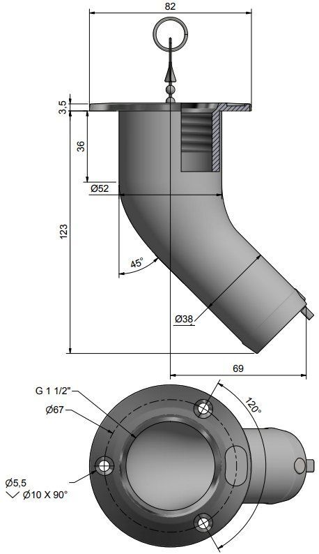 Produktinformationen "Roca Einfüllstutzen aus Edelstahl 38mm Anschluss mit 45° Winkel"