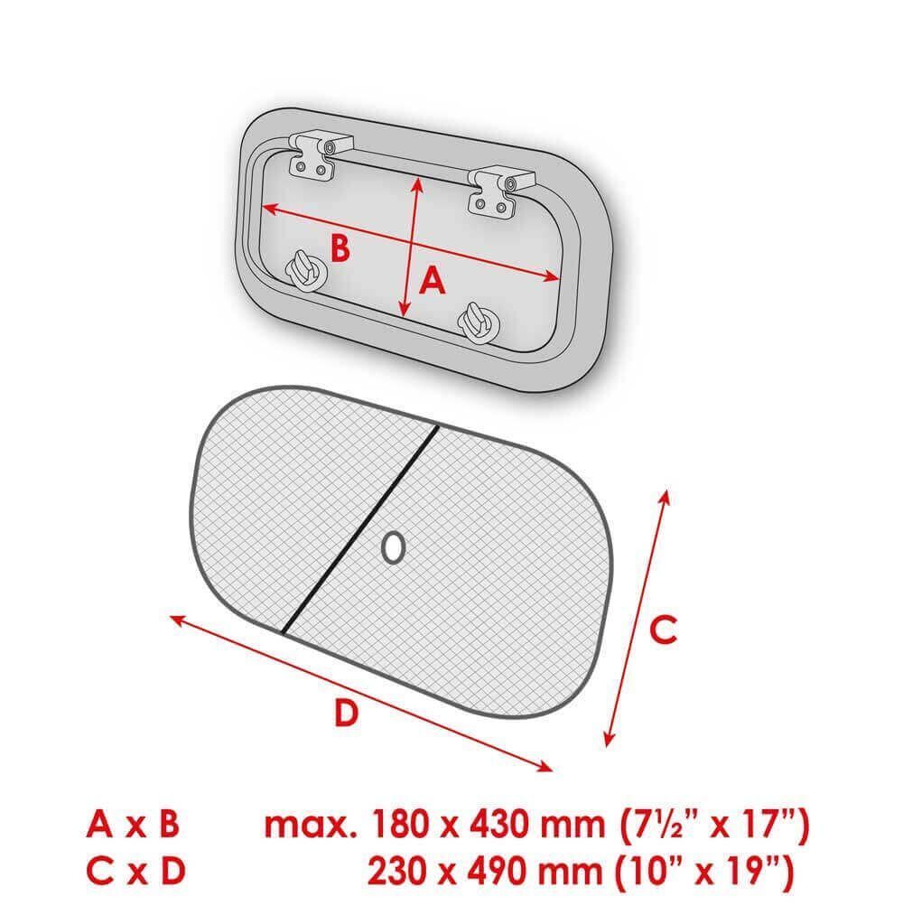 • Passend für Bullaugen mit Innenmaßen bis zu 180 x 430 mm (7″ x 17″)