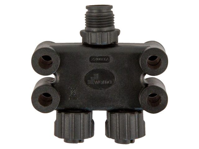 Die Splitterbox, auch Multiport-Box genannt, ist ideal, um mehrere NMEA2000-Einheiten an einer Stelle zu verbinden, beispielsweise hinter dem Armaturenbrett. Dank dieser Verteiler sind mehrere T-Verbinder und Drop-Kabel an ein und derselben Stelle nicht mehr notwendig. Das spart Zeit, Geld und Gewicht bei der Installation. Die Verteiler werden mit einem Drop-Kabel mit einem T-Stecker im NMEA2000-Netzwerk verbunden.