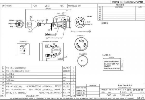Produktinformationen "Ratio Landanschlusskabel Amerikanische Norm auf CEE 230V 16A Länge: 25m"
