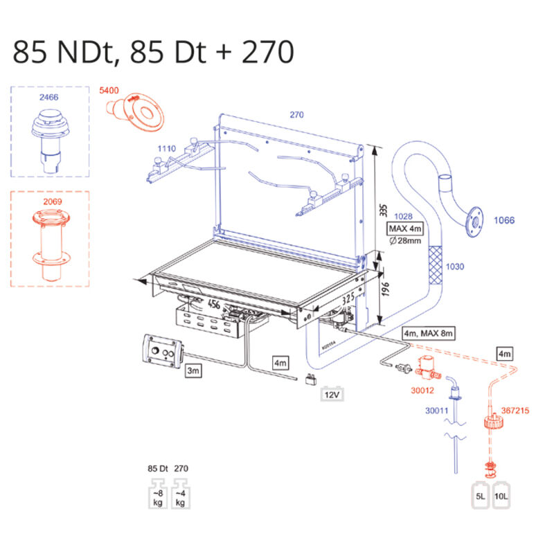 Die 85 DP kann auch mit kardanischer Aufhängung installiert werden. Die Installation eines Gebläseheizdeckels ist dann jedoch nicht möglich.