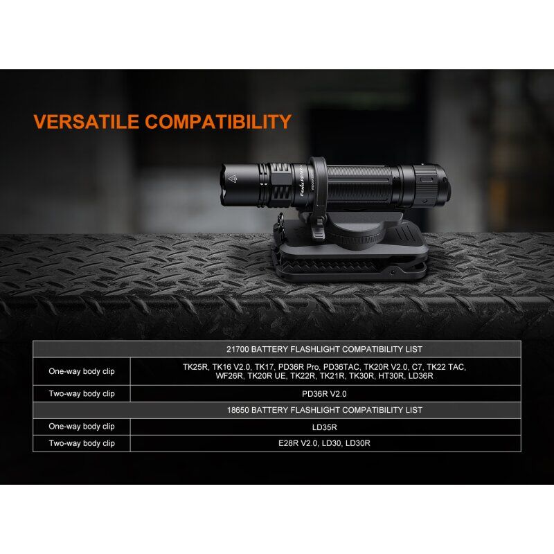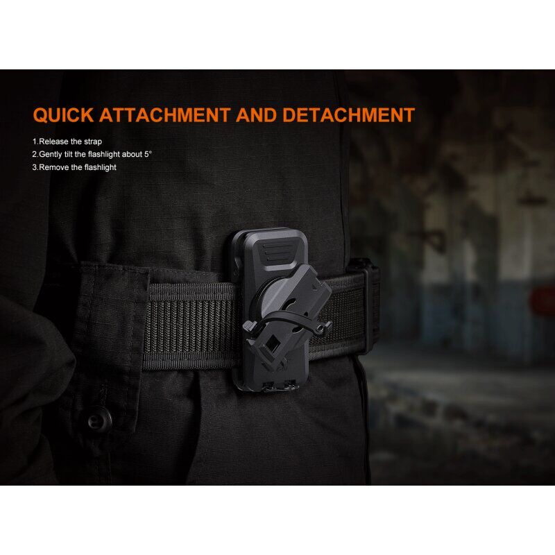 Das ALC-03 Schnellverschluss-Holster mit Riemenverschluss wurde speziell für die doppelte Lichtquelle der TK25R entwickelt, die sowohl das Hauptlicht als auch die Seitenleuchten umfasst. Dieses Holster aus Nylon und Glasfaser bietet Zuverlässigkeit und Langlebigkeit. Sein Metallclipverschluss sorgt für eine sichere Befestigung auch bei intensiven Bewegungen.