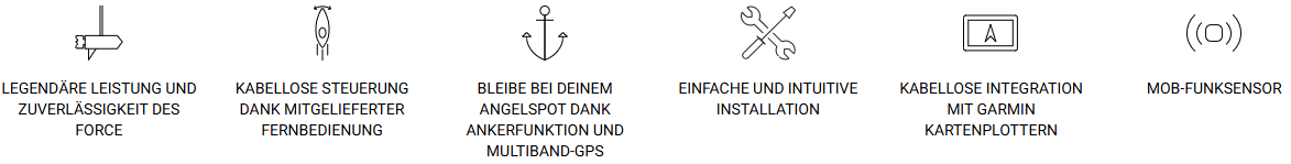 Durch die drahtlose Integration mit deinen Garmin Kartenplottern kannst du Routen und Tracks für den Elektromotor erstellen, denen du beim Angeln folgen kannst. Außerdem kannst über die Steuerleiste des Kartenplotters Gas und Steuerung anpassen, Motoreinstellungen ändern u.v.m.