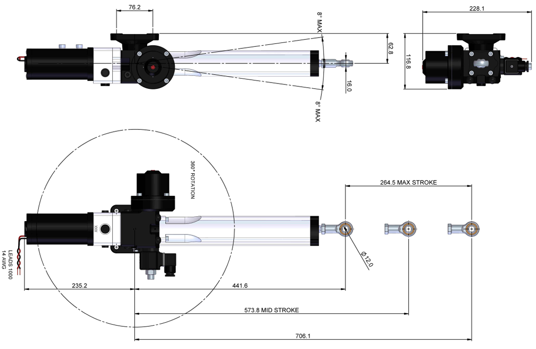 Produktinformationen "Hy-Pro Hydraulischer Linearantrieb Medium (250mm Hub) 12V 9 Sek. solo"