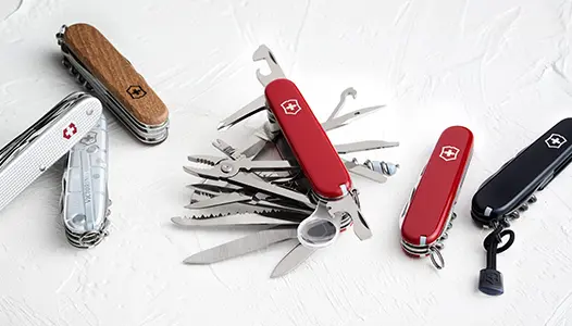 Für jede Anforderung das passende Taschenmesser. Das bekannte schweizer Offiziersmesser gibt es mittlerweile in vielen Ausführungen und Farben, dabei hat dieser Klassiker nichts an seinem praktischen Nutzen im Alltag eingebüßt. Neben Taschenmessern finden Sie hier auch die Victorinox Multitools, die ebenfalls an Bord starke Dienste leisten.