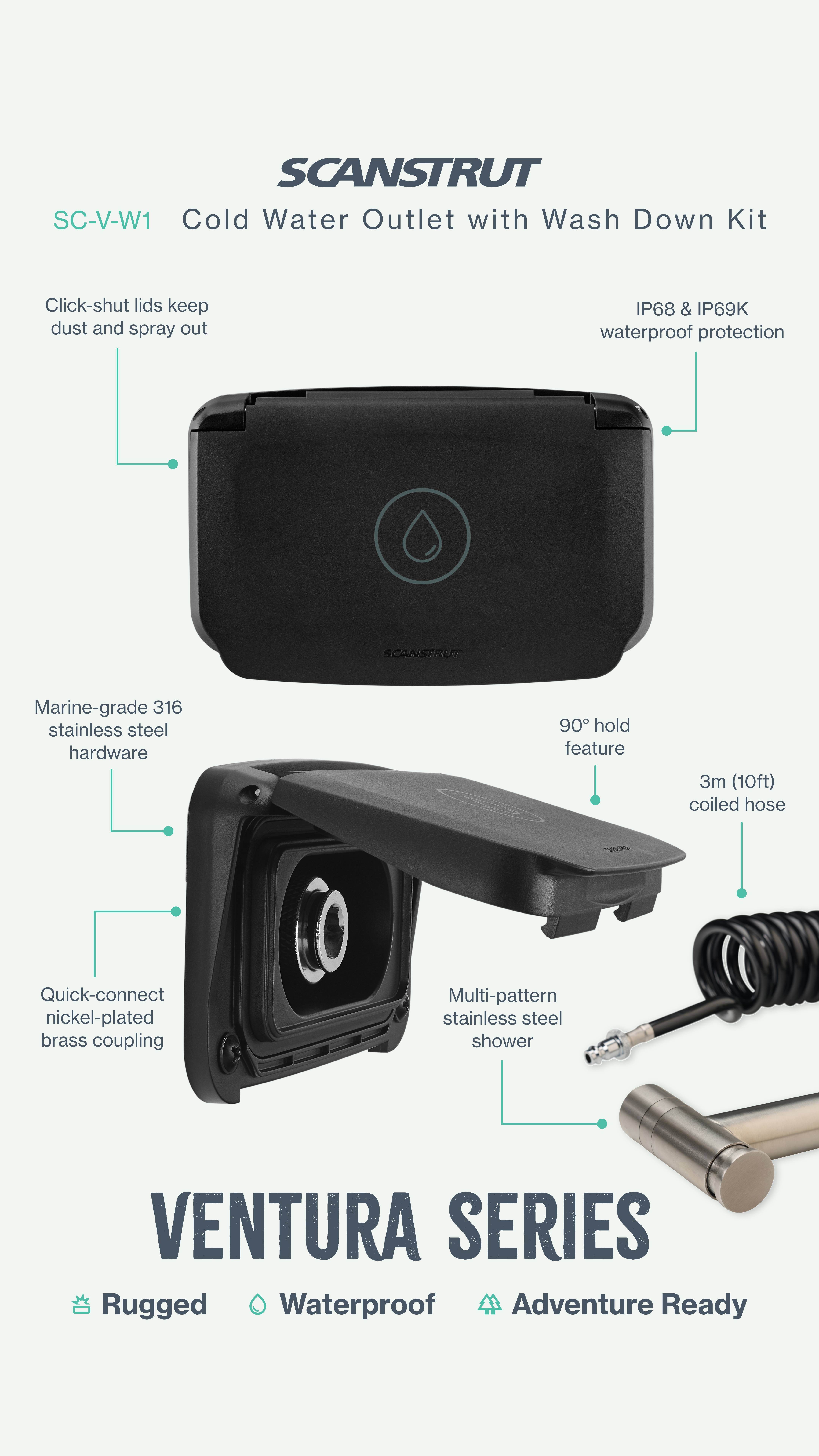 Produktinformationen "Scanstrut Ventura Kaltwasserauslass mit 3m Spiralschlauch und Duschkopf"