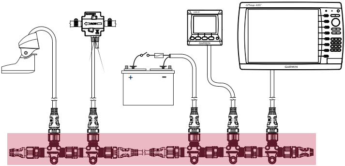 - Normalerweise kann man sich ein NMEA2000 Netzwerk und speziell das Backbone wie eine Datenautobahn auf und entlang der Schiffsmittellinie von vorne nach hinten vorstellen.