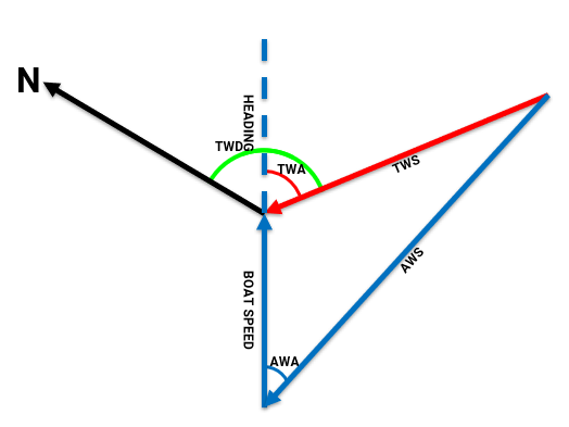 In den modernen NMEA0183 oder NMEA2000 Systemen steht die TWD ohnehin in der Regel nur zur Verfügung wenn ein intelligentes Gerät die Information AWA und (STW oder SOG) und das HDG erkennt und entsprechend berechnen kann (Kräfte-Parallelogramm).
